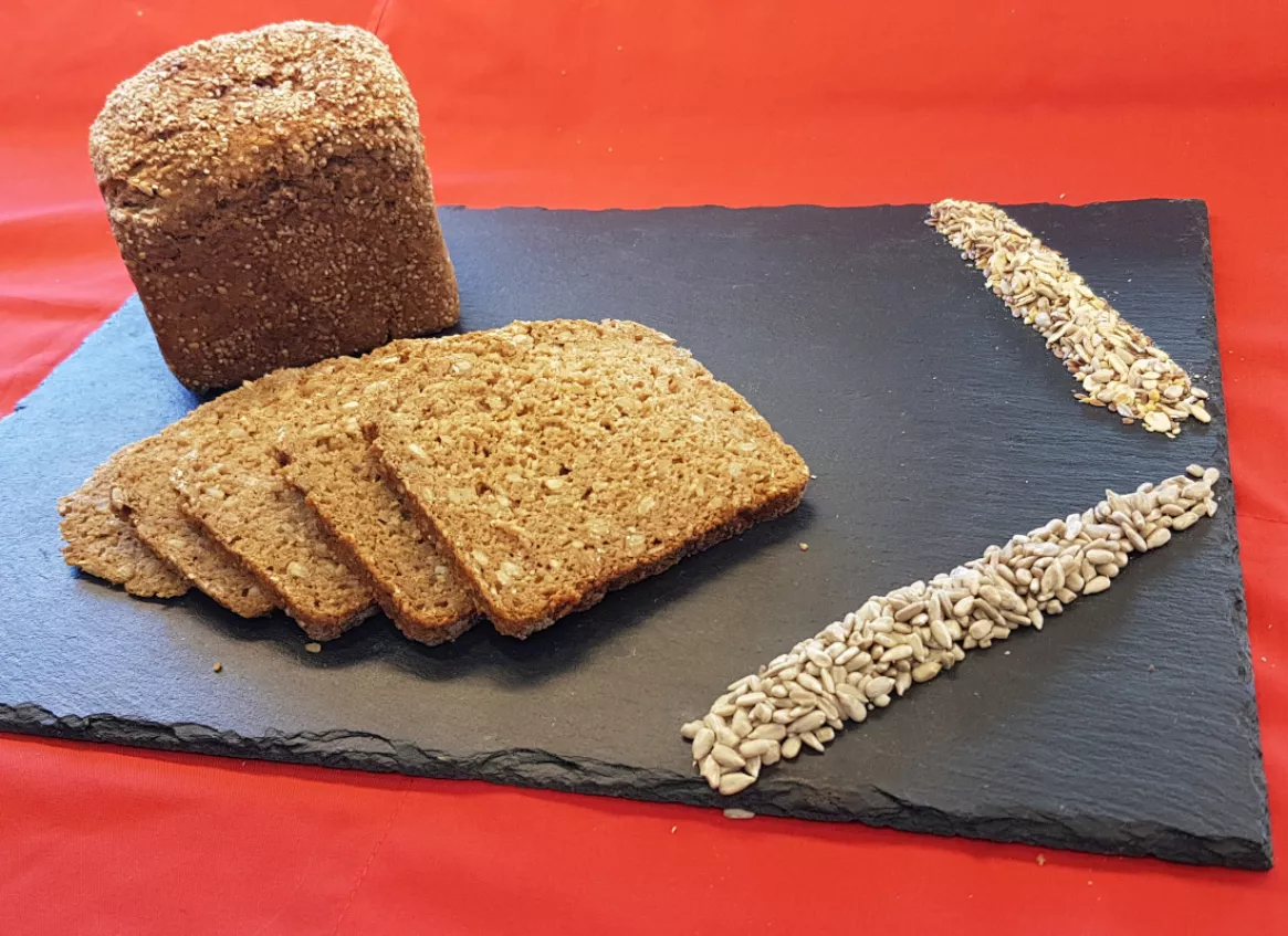 Dinkelvollkornschrot Dinkelflocken Dinkelvollkornmehl Sonnenblumenkerne Dinkelvollkornsauerteig ( Dinkelvollkornmehl, Starterkulturen) Kartoffelflocken Gerstenmalzschrot Zucker Dextrose jodiertes Speisesalz Stabilisator Guarkernmehl Traubenkonzentrat Malzextrakt ( Gerstenmalz, Wasser ) Natriumdiacetat